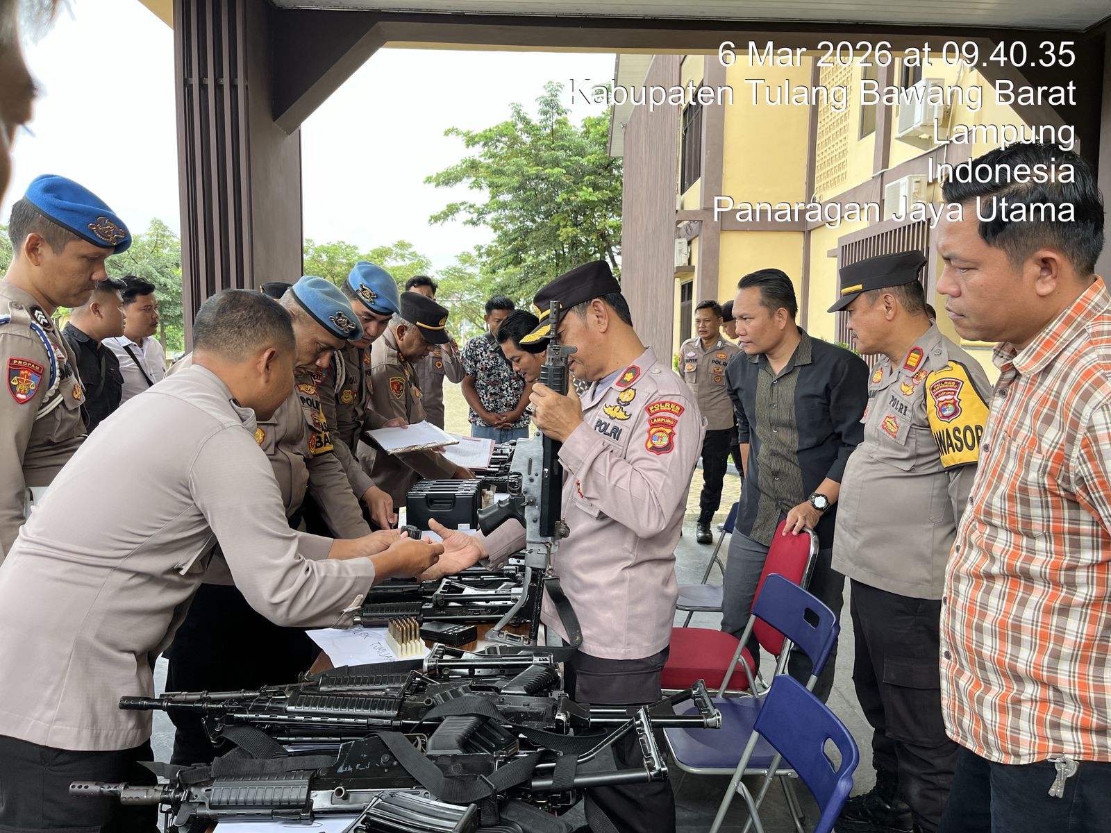Kegiatan pengecekan dan pemeriksaan secara berkala senpi dinas Inventaris ini di laksanakan Setelah Pelaksanaan Apel Pagi di Halaman Mapolres Tubaba, untuk Memastikan penggunaan senpi dinas sesuai aturan dan ketentuan, Bag Log bersama Sipropam serta Siwas melakukan pendampingan pemeriksaan, dalam pelaksanaan dihadiri oleh Kabag Log Kompol Tarmansyah, S.E., beseta Pejabat Utama (PJU) dan Perwira Polres, dan personel pemegang senpi dinas. Jumat (06/03/2026)