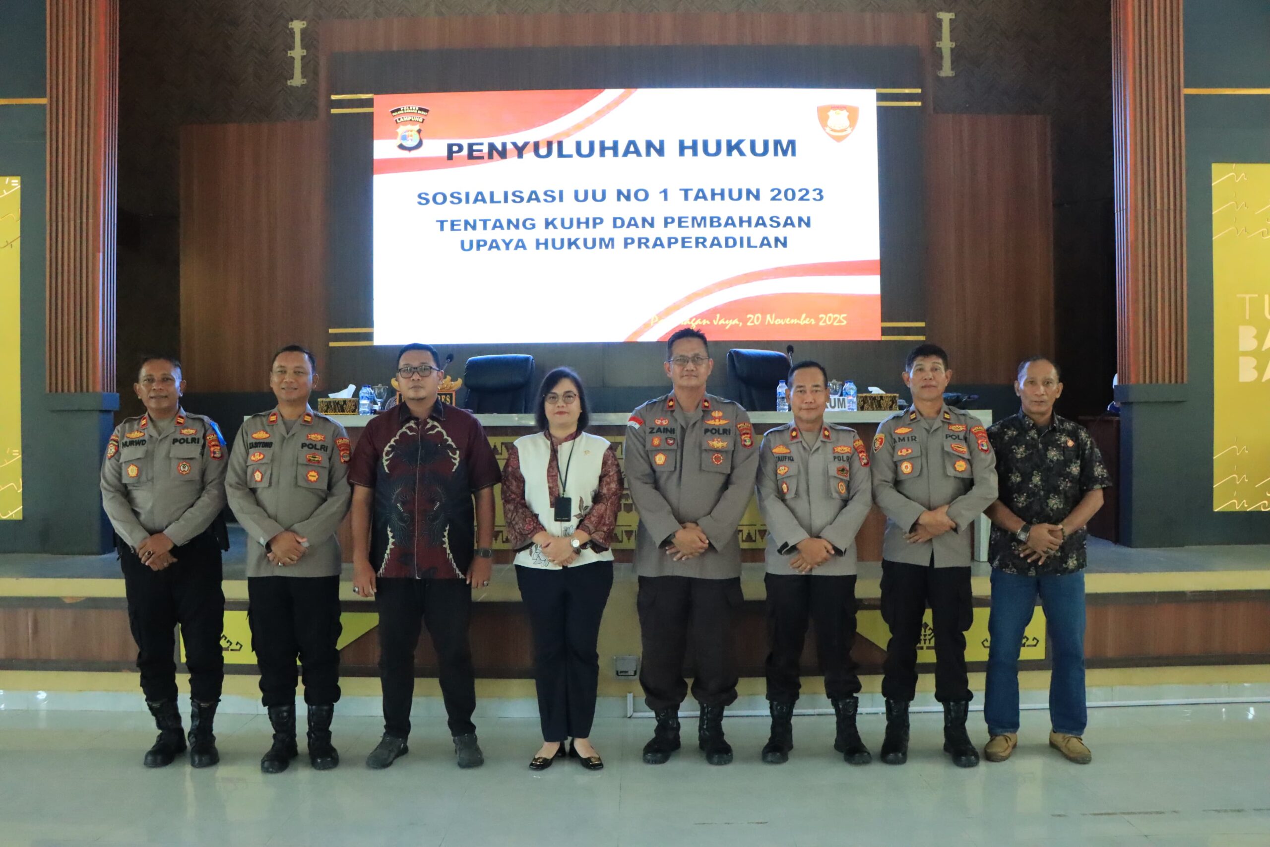 Tulang Bawang Barat (infoku.co.id)- Dalam rangka meningkatkan pemahaman hukum bagi seluruh personel, Kepolisian Resor Tulang Bawang Barat (Tubaba) melaksanakan kegiatan “Sosialisasi Hukum tentang Undang-Undang Nomor 1 Tahun 2023 tentang Kitab Undang-Undang Hukum Pidana (KUHP) dan Pembahasan upaya hukum praperadilan”, bertempat di Aula Sarja Arya Racana Mapolres Tubaba, Kamis (20/11/2025)